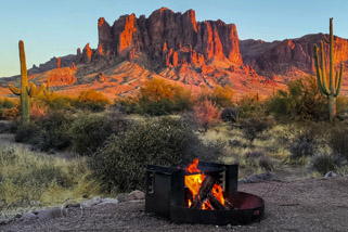at the base of the Superstition Mountains. It offers scenic hiking trails,