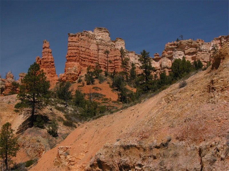 Bryce Canyon is in the Southern part of Utah and is one of the smaller national parks. But is extremely colorful. To get to Bryce we drove though part of the Grand Staircase Escalante National Monument. It was 35 miles of dirt road driving that at times was pretty rough. The views to the west were of Bryce Canyon and were very colorful. This view is just to give a feel for the road. |