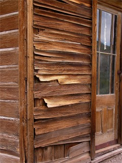 This close up gives you an idea of the state of the wood in the buildings. Bodie is at an elevation of about 8300 feet. Temperatures in the winter can hit 30 below 0. But gold fever and the lure of striking it rich can overcome a lot of hardship I guess. |