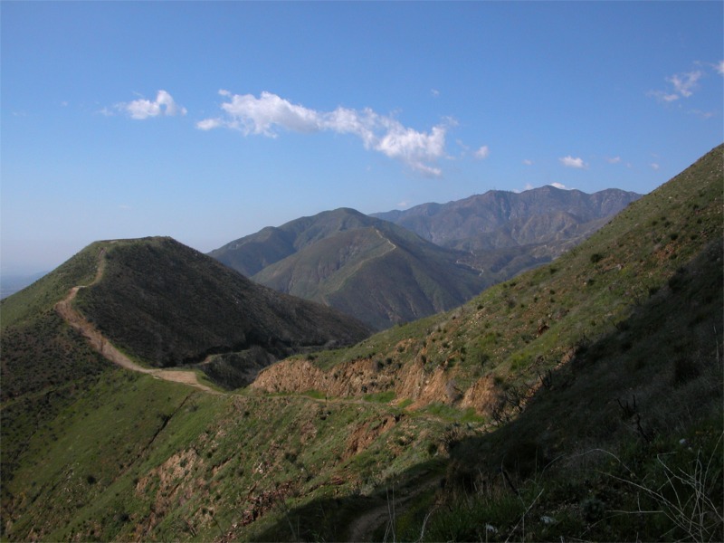 The mountain in the background is Cucamonga peak, elevation 8859 ft.. In the four years we have lived here I have never seen the mountains so green. |