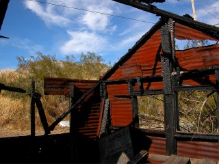 Some of the homes in Oatman. This burned out structure made for some interesting