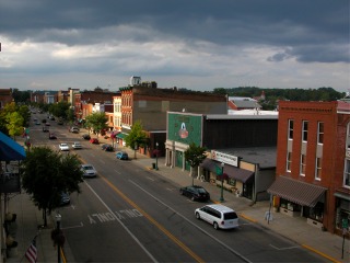 This picture is of Front Street taken from the balcony of our Hotel. I don't have enough room here to put pictures of the Village of Harmar but it is a short walk across the Muskingham Rriver. It's a great place to look at old homes, train museum, Coke Museum and enjoy the advertised "Sure To Be Famous Baloney Sandwich" at the Harmar Tavern. We always stop in at Schafer Leather Store to visit with the friendly folks there. They have always given us good information on things to do, and places to eat. One time, they even lead us on a motorcycle ride through some of the wonderful roads in the area. Like most of the stores downtown, they have photos of the 2004 floods, and the folks at Schafer's are happy to show you their pictures. |