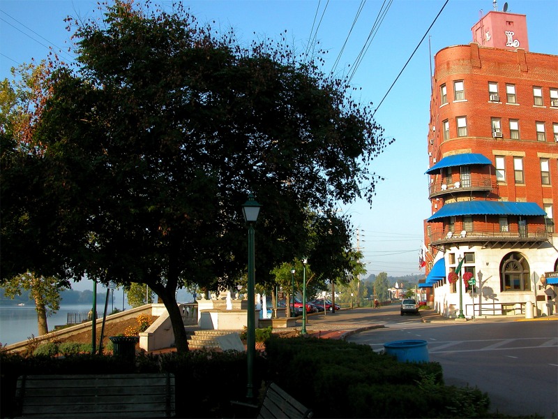 This is a picture of our hotel, The Lafayette Hotel. We always stay in either of the two rooms that have the balconies shown in this picture. From the balcony you can watch the sunrise and sunset over the rivers. Sunrise is over the Ohio and the sunset is over the confluence of the Muskingum and Ohio. The two rooms 203 and 304 are wonderful and large. Each September they have a Sternwheeler Festival in Marietta. We have heard the festival is a lot of fun, but we have never attended it. |