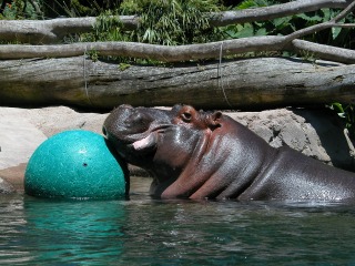 This guy stole the show for me. The hippo was huge but he would glide around the water playing with this ball. Then he would pause like this to make sure everybody was watching him. It was obvious he was having fun showing off for us. |