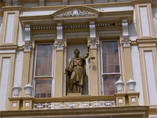 This is Storey County Courthouse. The statue of Lady of Justice here is not blind folded. Most depictions of her she is blind folded to show the justice is blind. In one hand she has the scales of Justice and in the other a sword. Hmm could this be something else for the ACLU to complain about. After all Lady Justice is a goddess and it is found all over the US in courthouses. |