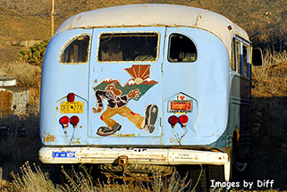 The license plate on this bus is Alaska and it expired in May of 2006 so