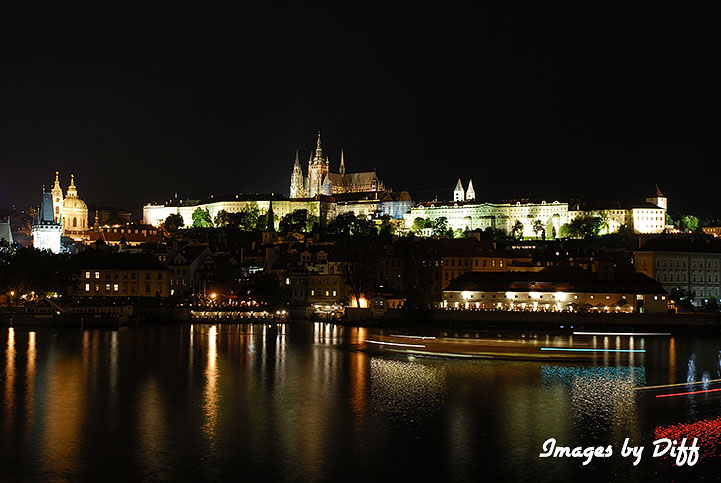 centuries damaged the originals. The night photo is of the Prague Castle.