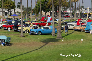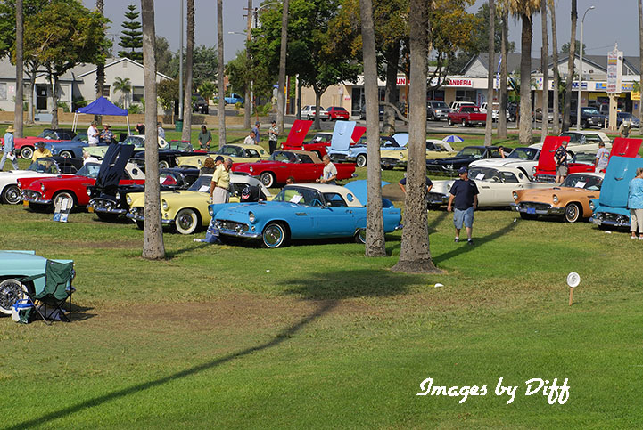 This show was sponsored by the Earlybirds and Thunderbirds of Southern California club. I am including one shot showing a bit of an overall picture and everything else are close-ups. I was fascinated this day by some of the little touches that had been done to this marquee, some from the factory and others by the owners. Besides, the fog that had not burned off yet and made it difficult to take any other kind of picture. |