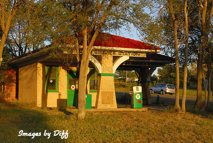 Texas has many service stations in ruins and also restored. The one to the left