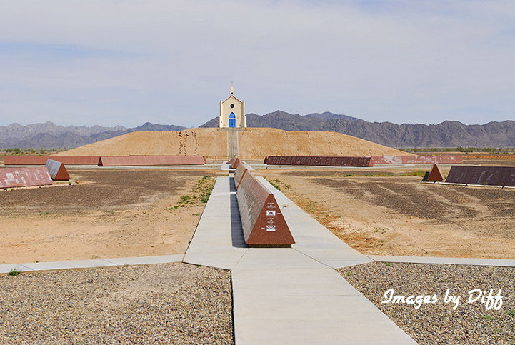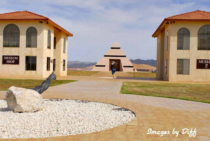 The Official Center of the World is located in Felicity California. It is a dot on the plaque inside the pyramid. If you think about it the center of the world could be anywhere on the earth. But it was set by law as here in Felicity because it is based on a popular children's book, COE The Good Dragon at the Center of the World. Tours are offered in the Winter from Thanksgiving to Easter. The tour includes a 7 minute video explaining Felicity and the History in Granite Museum. You will also have a serious ceremony welcoming you to the Center of the World where you stand on the center and the time is officially noted. You then receive a certificate showing the date and time you stepped on the official center of the world. The idea for this entire complex came from Jacques-Andre Istel who is also noted as the father of sport parachuting. |