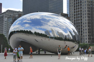 concert venue. The bean is an elliptical sculpture that reflects the city