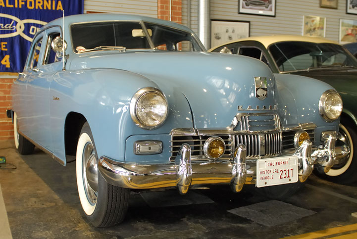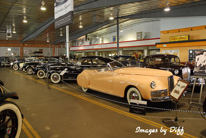 They have more then 70 cars on display. The one to the left is a Kaiser. Yes it was owned and run by the same man who started the Health Care company I work for. They have a large selection of Packard's too. Like the peach colored 1941 Packard Clipper Darrin. |