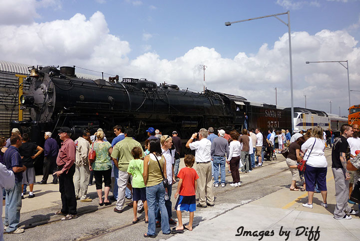 For National Train day San Bernardino held an event at the historic Santa Fe Depot. Part of the event was the Santa Fe Locomotive 3751. Working at the Route 66 museum in Barstow we get a lot of train buffs so I have come to realize just how many there are. There was a huge crowd turned out to see this steam locomotive. It is by far one of the largest locomotives I have ever seen. This locomotive, 3751, is a thing of beauty. It is obviously very well cared for. It was very clean and shiny. It burns fuel oil so it not dirty from coal. |