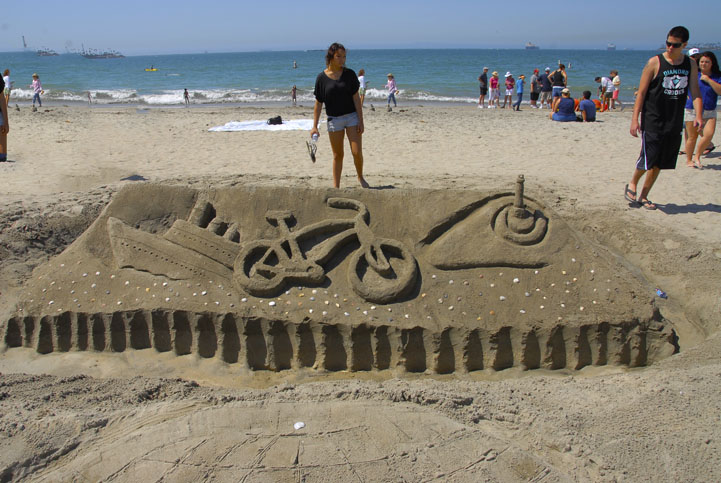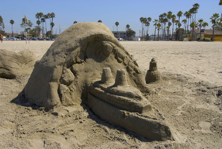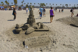 The web site says this was the 80th annual Long Beach Sand Castle Contest. I figured wow this should be pretty good to be going on for 80 years. I have been to a sand castle contest out in the desert in Barstow and in Oceanside CA and they were really pretty incredible. I was a bit under whelmed by this one. The web site goes on to say You can build your own sculpture or just see the ones built by professionals as well as corporate and community teams. |