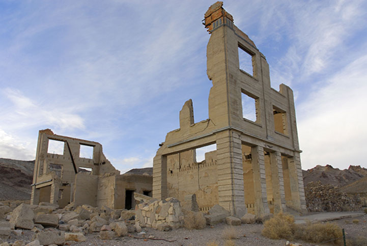 During the gold rush thousands came to Rhyolite. The population swelled to