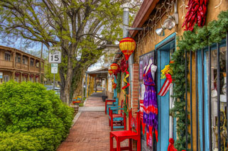 In Albuquerque we stayed at the Hotel Albuquerque at Old Town. Our rooms had balconies over looking Old Town and the last morning we saw hot air balloons going up off in the distance. In Albuquerque we went to the Hot Air Balloon museum, the Unser Racing Museum, Petroglyph National Monument, Old Town Albuquerque and the Albuquerque Museum. We also went to a number of the locations in the Breaking Bad TV series filmed there. Jesse Pinkman’s parents house, Walter Whites house, Jesse’s duplex he shared with his girlfriend, the Octopus car wash, Better Call Saul’s Office and Los Pollos Hermanos, actually Twisters. The Unser racing museum had race simulators you could use. |