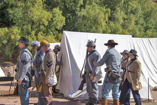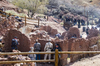Calico Ghost town is a county park of a restored silver mining town. Every year they have a large Civil War reenactment. I went to it about 10 years ago while Karen was in Cleveland and enjoyed it so wanted Karen to see it. I find it amazing how many people are into this kind of thing and all across the US people do Civil War reenactments. The costumes they wear are very authentic down to the materials, buttons on the clothing etc. Every time they fire the guns they had to purchase the materials to make the fake bullets so they spend a fair amount of money on doing these things. |