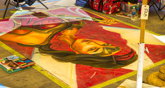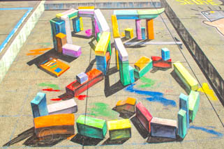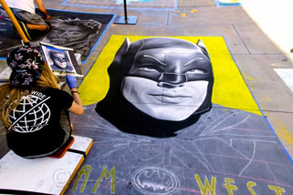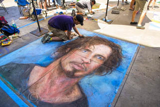 Pasadena has been having a Chalk Festival for 25 years now. I often put it on our calendar but usually something else comes up and we never get to go. Well... we finally made it and it was smoking hot like 95 degrees. On the cement, in the sun it was more like 125 degrees. Because of that we went early when it first opened which mean some of the artwork was not completed yet. In 2010, The Pasadena Chalk Festival was officially named the largest street painting festival by the Guinness World Record, welcoming more than 600 artists using over 25,000 sticks of chalk and drawing a crowd of more than 100,000 visitors in one weekend. |