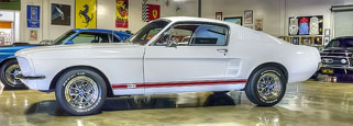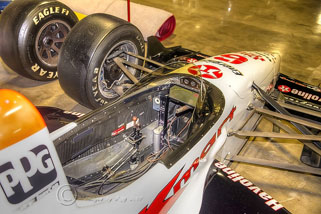 The picture of the open wheel car to the left shows the cockpit and if you saw highlights of the Indy 500 this year you saw a spectacular crash where the driver got out and walked away. We were at the manufacturer of the Indy cars this year and saw why. The new cockpits are very strong carbon fiber with foam that encapsulates and protects the driver. This picture to the left has no protection like that as it is a much older design. The museum for sure had a lot of Mustangs, Lamborghini's and Ferrari's. |