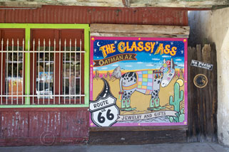 Our first time ever in Oatman was about 1995. Shops come and go and the owners come and go but we happened to be there about lunch and they were still doing their little gun fight show. Many of the shops sell the kitschy touristy stuff but there are always a couple of shops like the Classy Ass that sell more upscale items. Of course the wild burros are still there but they no longer sell carrots to feed them instead it is oat pellets. Apparently the burros get very aggressive for the sweetness of the carrots and it is not really good for them to have a diet of a lot of carrots. |