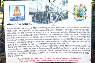 to turn trash into treasure. The restaurant is filled with his art, from the