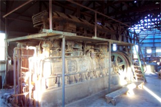 This building contained the generator that was used to power the town and mine. It stands about 16 feet high. At the far end of the building is the machine shop. There is still a lathe, drill press and other machines there. They used electricity to leach out gold and the tanks and rods used are still there in another building. |