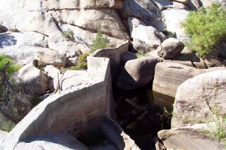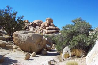 This is a shot of the trail and of course some rock formations. Barker dam is an area where water collected naturally in a basin so a guy named Barker built a dam to hold even more water. The Mojave desert here gets about 4 inches of rain a year. |