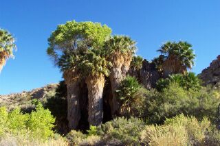 This picture is of the Cotton Wood Oasis. One of a few at the Park. Anytime travelers saw large palms like this they knew there was water. I wish I had a person or something in this picture to get a perspective of height. If I had to guess I would say 50 to 60 feet high. Hard to tell in this photo. Anyway they could be seen from some distance. |