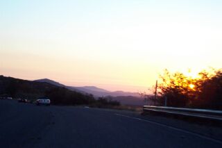 Notice the colors on the hills and valleys as the sun sets. The guy who put this run together did a really nice job. As all the rides with the Miata group out here have been they are very well thought out and put together. |