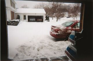 A view out the garage door... Poor Karen had to shovel this for the movers.